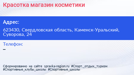 Красотка, магазин косметики по адресу 623430, Свердловская область, Каменск-Уральский, Суворова, 24 в дальнейшем Организация, размещена в следующих категориях: