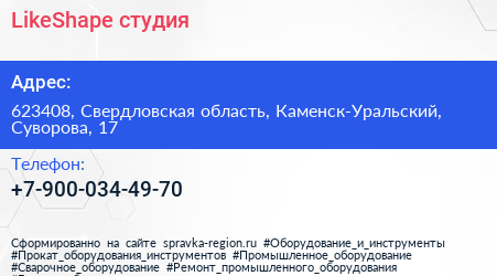 LikeShape, студия по адресу 623408, Свердловская область, Каменск-Уральский, Суворова, 17 в дальнейшем Организация, размещена в следующих категориях: