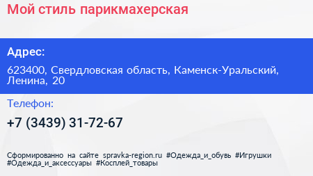 Мой стиль, парикмахерская по адресу 623400, Свердловская область, Каменск-Уральский, Ленина, 20 в дальнейшем Организация, размещена в следующих категориях: