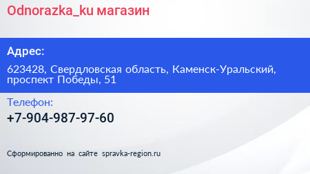Odnorazka_ku, магазин по адресу 623428, Свердловская область, Каменск-Уральский, проспект Победы, 51 в дальнейшем Организация, размещена в следующих категориях: