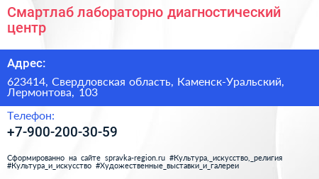 Смартлаб, лабораторно-диагностический центр по адресу 623414, Свердловская область, Каменск-Уральский, Лермонтова, 103 в дальнейшем Организация, размещена в следующих категориях: