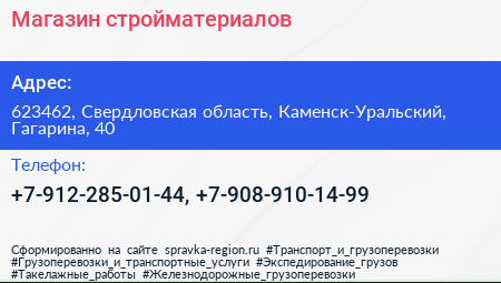 Магазин стройматериалов по адресу 623462, Свердловская область, Каменск-Уральский, Гагарина, 40 в дальнейшем Организация, размещена в следующих категориях: