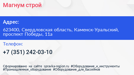 Магнум-строй по адресу 623400, Свердловская область, Каменск-Уральский, проспект Победы, 11а в дальнейшем Организация, размещена в следующих категориях:
