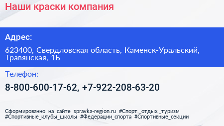 Наши краски, компания по адресу 623400, Свердловская область, Каменск-Уральский, Травянская, 1Б в дальнейшем Организация, размещена в следующих категориях: