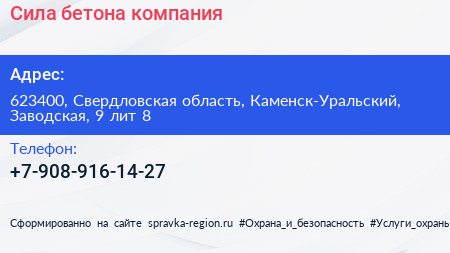 Сила бетона, компания по адресу 623400, Свердловская область, Каменск-Уральский, Заводская, 9 лит 8 в дальнейшем Организация, размещена в следующих категориях: