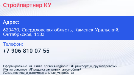 Стройпартнер-КУ по адресу 623430, Свердловская область, Каменск-Уральский, Октябрьская, 113а в дальнейшем Организация, размещена в следующих категориях: