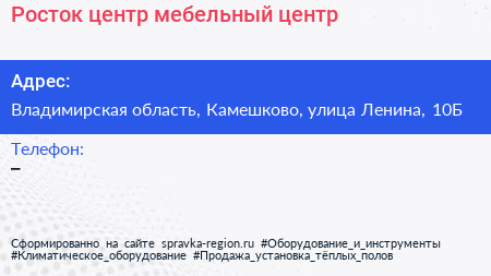 Росток-центр, мебельный центр по адресу Владимирская область, Камешково, улица Ленина, 10Б в дальнейшем Организация, размещена в следующих категориях: