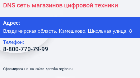 DNS, сеть магазинов цифровой техники по адресу Владимирская область, Камешково, Школьная улица, 8 в дальнейшем Организация, размещена в следующих категориях: