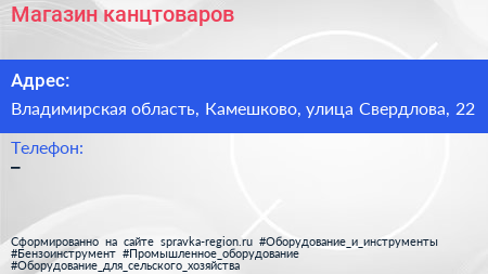 Магазин канцтоваров по адресу Владимирская область, Камешково, улица Свердлова, 22 в дальнейшем Организация, размещена в следующих категориях: