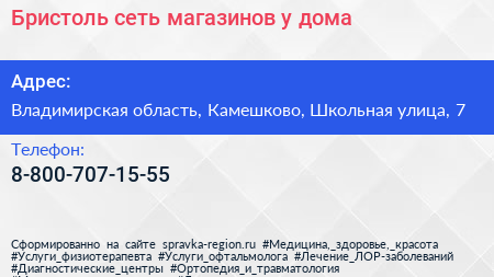 Бристоль, сеть магазинов у дома по адресу Владимирская область, Камешково, Школьная улица, 7 в дальнейшем Организация, размещена в следующих категориях: