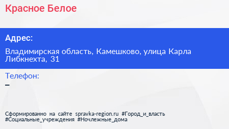 Красное & Белое по адресу Владимирская область, Камешково, улица Карла Либкнехта, 31 в дальнейшем Организация, размещена в следующих категориях:
