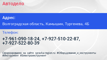 Автодело по адресу Волгоградская область, Камышин, Тургенева, 4Б в дальнейшем Организация, размещена в следующих категориях:
