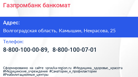 Газпромбанк, банкомат по адресу Волгоградская область, Камышин, Некрасова, 25 в дальнейшем Организация, размещена в следующих категориях: