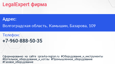 LegalExpert, фирма по адресу Волгоградская область, Камышин, Базарова, 109 в дальнейшем Организация, размещена в следующих категориях: