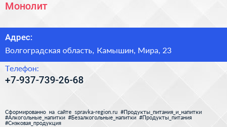 Монолит по адресу Волгоградская область, Камышин, Мира, 23 в дальнейшем Организация, размещена в следующих категориях: