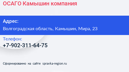 ОСАГО Камышин, компания по адресу Волгоградская область, Камышин, Мира, 23 в дальнейшем Организация, размещена в следующих категориях: