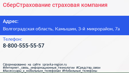 СберСтрахование, страховая компания по адресу Волгоградская область, Камышин, 3-й микрорайон, 7а в дальнейшем Организация, размещена в следующих категориях: