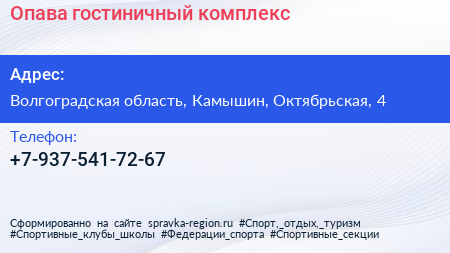 Опава, гостиничный комплекс по адресу Волгоградская область, Камышин, Октябрьская, 4 в дальнейшем Организация, размещена в следующих категориях: