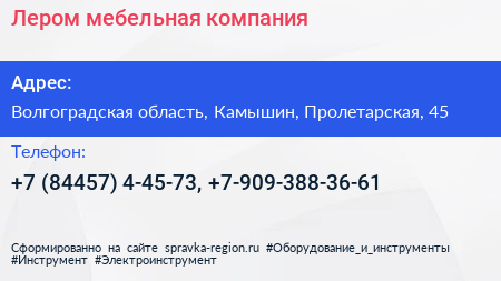 Лером, мебельная компания по адресу Волгоградская область, Камышин, Пролетарская, 45 в дальнейшем Организация, размещена в следующих категориях: