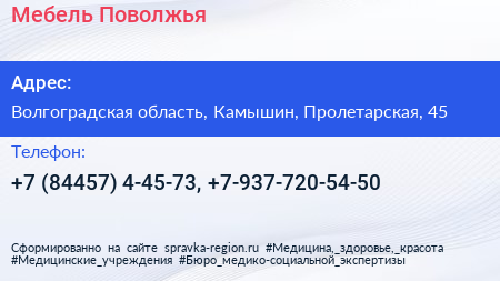 Мебель Поволжья по адресу Волгоградская область, Камышин, Пролетарская, 45 в дальнейшем Организация, размещена в следующих категориях: