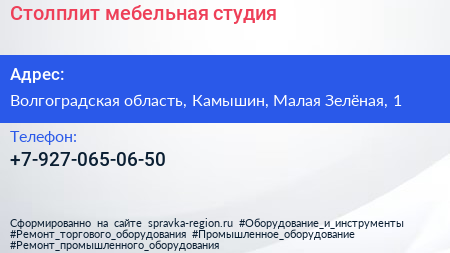 Столплит, мебельная студия по адресу Волгоградская область, Камышин, Малая Зелёная, 1 в дальнейшем Организация, размещена в следующих категориях: