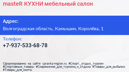 masteR КУХНИ, мебельный салон по адресу Волгоградская область, Камышин, Королёва, 1 в дальнейшем Организация, размещена в следующих категориях:
