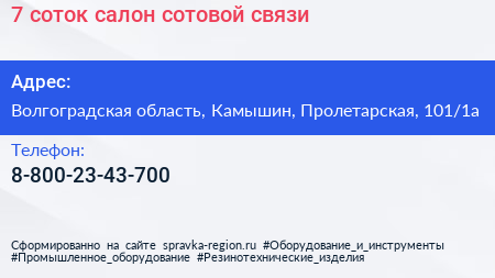 7 соток, салон сотовой связи по адресу Волгоградская область, Камышин, Пролетарская, 101/1а в дальнейшем Организация, размещена в следующих категориях: