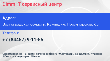 Dimm-IT, сервисный центр по адресу Волгоградская область, Камышин, Пролетарская, 65 в дальнейшем Организация, размещена в следующих категориях: