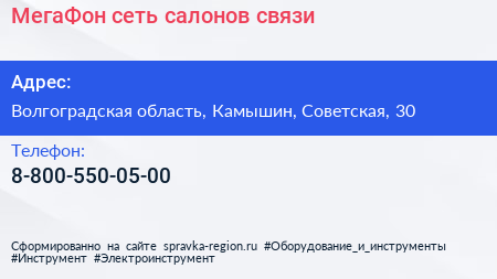 МегаФон, сеть салонов связи по адресу Волгоградская область, Камышин, Советская, 30 в дальнейшем Организация, размещена в следующих категориях: