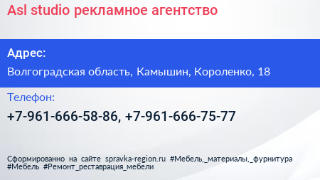 Asl studio, рекламное агентство по адресу Волгоградская область, Камышин, Короленко, 18 в дальнейшем Организация, размещена в следующих категориях: