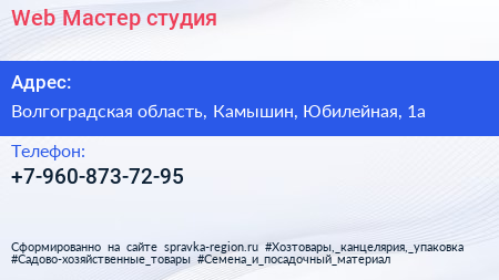Web-Мастер, студия по адресу Волгоградская область, Камышин, Юбилейная, 1а в дальнейшем Организация, размещена в следующих категориях: