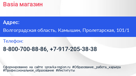 Basia, магазин по адресу Волгоградская область, Камышин, Пролетарская, 101/1 в дальнейшем Организация, размещена в следующих категориях: