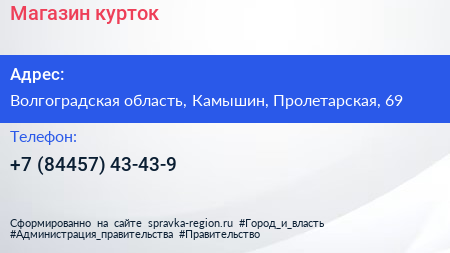 Магазин курток по адресу Волгоградская область, Камышин, Пролетарская, 69 в дальнейшем Организация, размещена в следующих категориях:
