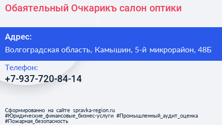 Обаятельный Очкарикъ, салон оптики по адресу Волгоградская область, Камышин, 5-й микрорайон, 48Б в дальнейшем Организация, размещена в следующих категориях: