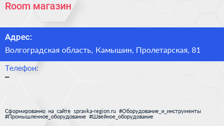 Room, магазин по адресу Волгоградская область, Камышин, Пролетарская, 81 в дальнейшем Организация, размещена в следующих категориях: