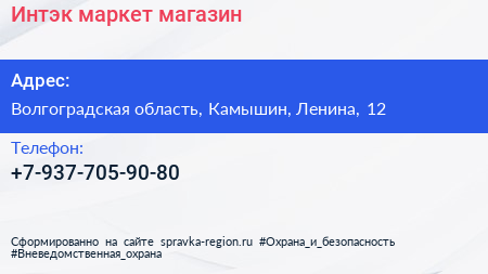 Интэк-маркет, магазин по адресу Волгоградская область, Камышин, Ленина, 12 в дальнейшем Организация, размещена в следующих категориях: