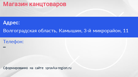 Магазин канцтоваров по адресу Волгоградская область, Камышин, 3-й микрорайон, 11 в дальнейшем Организация, размещена в следующих категориях: