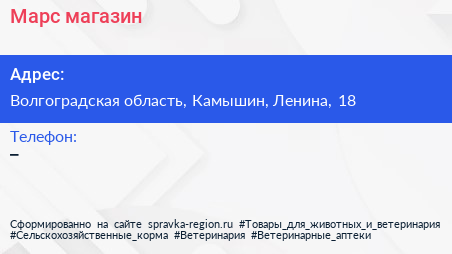 Марс, магазин по адресу Волгоградская область, Камышин, Ленина, 18 в дальнейшем Организация, размещена в следующих категориях: