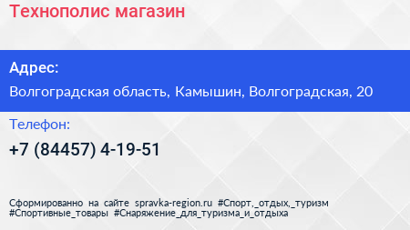 Технополис, магазин по адресу Волгоградская область, Камышин, Волгоградская, 20 в дальнейшем Организация, размещена в следующих категориях: