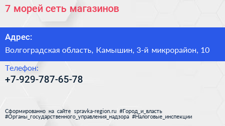 7 морей, сеть магазинов по адресу Волгоградская область, Камышин, 3-й микрорайон, 10 в дальнейшем Организация, размещена в следующих категориях: