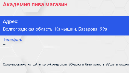 Академия пива, магазин по адресу Волгоградская область, Камышин, Базарова, 99а в дальнейшем Организация, размещена в следующих категориях: