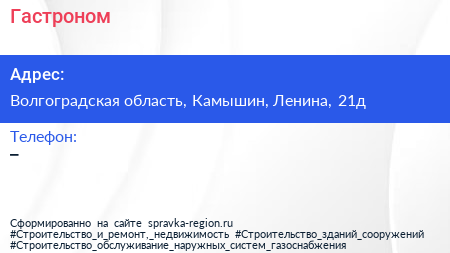 Гастроном по адресу Волгоградская область, Камышин, Ленина, 21д в дальнейшем Организация, размещена в следующих категориях: