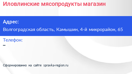 Иловлинские мясопродукты, магазин по адресу Волгоградская область, Камышин, 4-й микрорайон, 65 в дальнейшем Организация, размещена в следующих категориях: