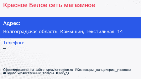Красное & Белое, сеть магазинов по адресу Волгоградская область, Камышин, Текстильная, 14 в дальнейшем Организация, размещена в следующих категориях: