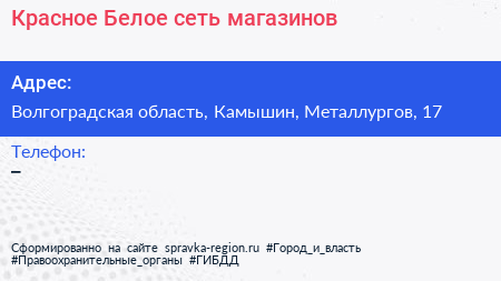 Красное & Белое, сеть магазинов по адресу Волгоградская область, Камышин, Металлургов, 17 в дальнейшем Организация, размещена в следующих категориях: