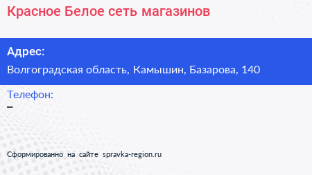 Красное & Белое, сеть магазинов по адресу Волгоградская область, Камышин, Базарова, 140 в дальнейшем Организация, размещена в следующих категориях: