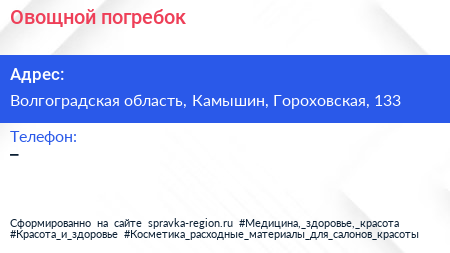 Овощной погребок по адресу Волгоградская область, Камышин, Гороховская, 133 в дальнейшем Организация, размещена в следующих категориях: