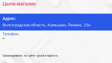 Цыпа, магазин по адресу Волгоградская область, Камышин, Ленина, 21е в дальнейшем Организация, размещена в следующих категориях: