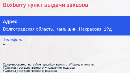 Boxberry, пункт выдачи заказов по адресу Волгоградская область, Камышин, Некрасова, 19д в дальнейшем Организация, размещена в следующих категориях: