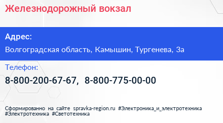 Железнодорожный вокзал по адресу Волгоградская область, Камышин, Тургенева, 3а в дальнейшем Организация, размещена в следующих категориях: